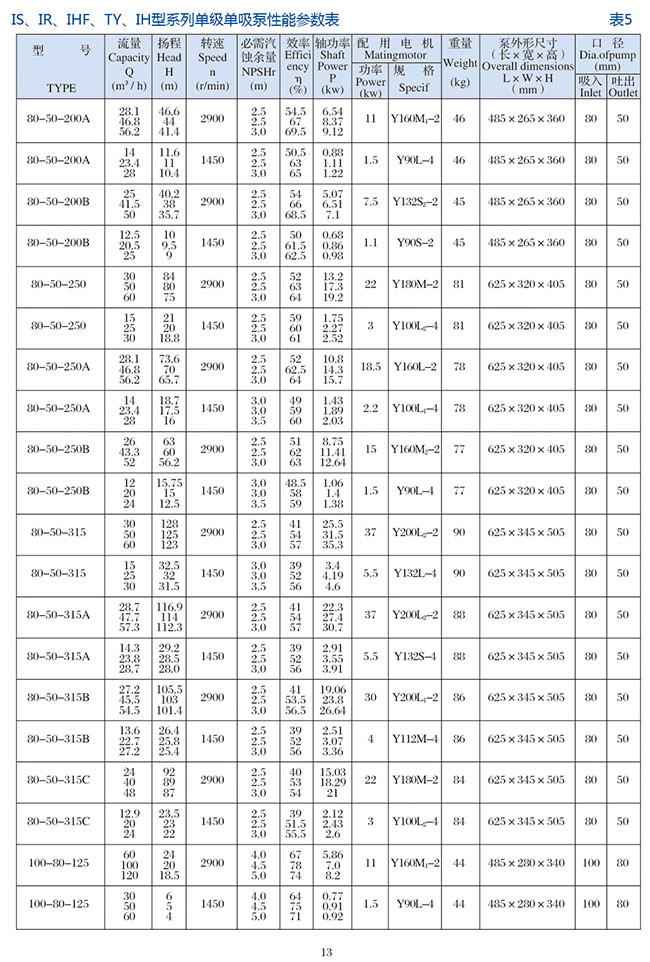 IS、IR、IHF、IH型系列单级单吸离心泵